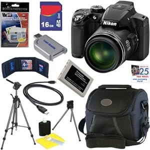 ++PLUS++ 16GB Deluxe Accessory Kit: 16 Gigabyte SDHC Secure Digital Memory Card - Secure Digital USB Card Reader - Universal Memory Card Wallet - Spare EN-EL5 Rechargeable Lithium ion Replacement Battery - Protective Digital Camera Carrying Case with Pockets and Strap - Package of LCD Screen Protectors - Full Size 50" Tripod w/Case - Extendable 8" Tabletop Mini Tripod - Lens Care & Cleaning Kit - HDMI Cable for direct connection to HDTV - BONUS!! FREE 25 Quality Prints. (promo code# on invoice).