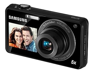 The Samsung ST700 DualView 16.1-Megapixel Digital Camera features LCD viewfinders on both the front and rear of the camera, allowing you to take perfectly framed self-portraits. The camera's Smart Auto feature automatically adjusts composition settings and chooses the right mode for your picture, while dual image stabilization yields photos that are clear and blur-free. The Samsung ST700 has a 16.1-megapixel resolution with a 5x optical zoom.